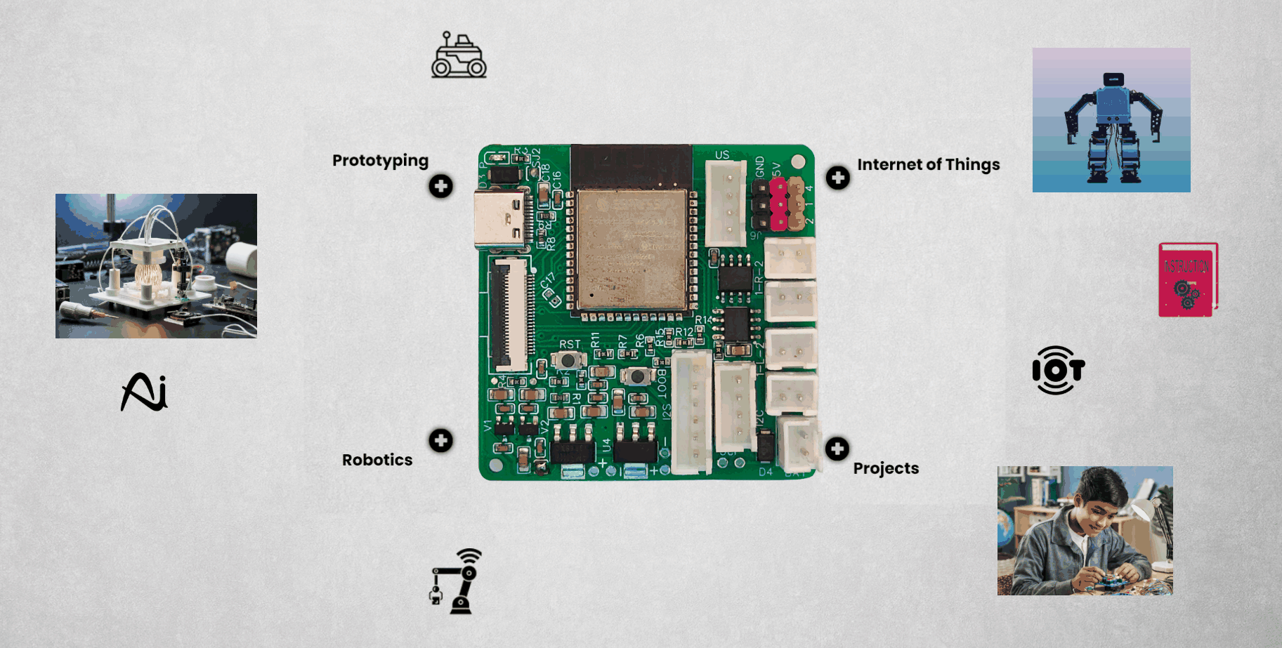 The board is equipped with everything you need to build advanced robots, including motor control, camera input, wireless communication, and data storage, ensuring it is an ideal choice for robotics enthusiasts and developers working on cutting-edge projects.